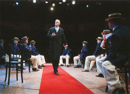 The running segment that opens the play in style is quickly followed by the story we know so well from Hugh Hudson's movie. The adaptation is quite faithful and even though condensed at points, it is also expanded in other parts. The biggest difference from the movie is probably the tone of the performances. Where the film's restrained mood always has a serious undertone, even when its dryly funny, the play has a more frivolous mindset and is more outspokenly acted, as befits the stage. The humor is louder, the tempo is faster, and the running more energetic. At points the physical performances turn into dance acts, and there are parts where the Gilbert and Sullivan songs heard in the movie are performed in ensemble by the cast. But it never takes over the story, and makes up for where cinematic excellence is left behind.