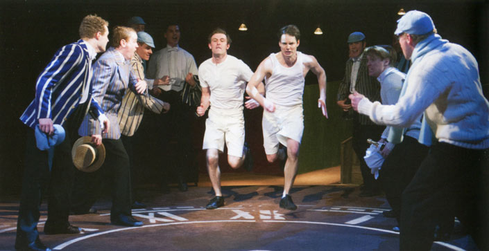 It's now 30 years since the movie ruled the box office and "stole" all those Oscars from the Americans, while Vangelis' main theme hit the charts and topped it for weeks in countries on both sides of the ocean. It may seem unlikely at first, but the idea to adapt such a movie for the stage, apparently initiated by a bet between movie director Hugh Hudson and producer Barbara Broccoli (yes, of James Bond fame and daughter of Albert R. Broccoli!) was no doubt propelled into production by the power of the Olympic games being hosted by the city of London. It made its way to the stage at the Hampstead theater and climbed the ladder all the way to London's prestigious West End district, winning the hearts of both critics and the public. It went on to sell out almost all of its performances, and pleasantly surprised even the most skeptical of critics. One might say the play is now driving the Olympic hype as much as the Olympics were driving the play.