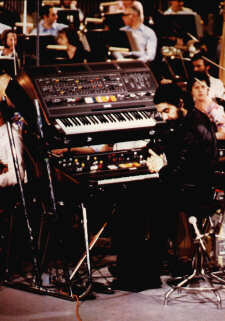 During Vangelis' stay in the US he unexpectedly gave a concert at the Royce Hall on Los Angeles' University campus. He set up his synths so he could single-handedly play live versions (in new improvised versions) of his famous works and improvise some new material. Sometimes the sound was a bit dry compared to his albums, because of the solo nature of his performance, but it certainly gave a special feeling to the proceedings. Vangelis' talent to variate on his melodies in unexpected fashion was displayed here in full glory.
