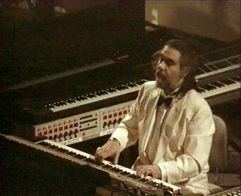 "There are so many many different things involved that it takes two days to set up all the gear. It is so difficult to make a balance because if you play pure electronically you have to balance that. We talk about electronic things today, we imagine always space sounds, but as you see this particular piece sounds like a symphony orchestra so sometimes I thought that it was much easier to use a symphony orchestra if than to play myself all the parts of the symphony orchestra! But it was a very good experience for me to do it."