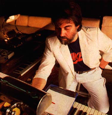 When it comes to discussing the Vangelis armoury of equipment, the man is reticent to detail individual instruments. Indeed, many of the keyboards in his studio have the manufacturer's name blacked out by tape! However, he's willing to talk in general terms; "It's very simple: I use everything you can buy on the market. Why? Because what's going on in musical instruments now is not very inspiring. I don't think synthesizers have developed in the way they should. Nobody in the world can develop and make a better instrument every year. For acoustic instruments it took years and years - centuries - in order to create the instrument. Here we have an instrument that lasts six months then another one comes and you have to learn how to operate that. None of these instruments become easier to play. When I say 'to play' I mean really play because the market is more orientated to people who don't play.