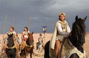 Alexander was the king of Macedonia and Greece who conquered most of the then-known world, more than 300 years BC. There are currently two major motion pictures in preparation about this historic figure, with Stone's movie leading the race, planned to reach cinemas in November 2004. Although it has not yet officially been titled, Stone's production is commonly referred to as "Alexander" in magazines and movie gossip sites on the internet. The star-studded cast list includes big names like Colin Farrell, Angelina Jolie, Anthony Hopkins, Jared Leto and Val Kilmer.