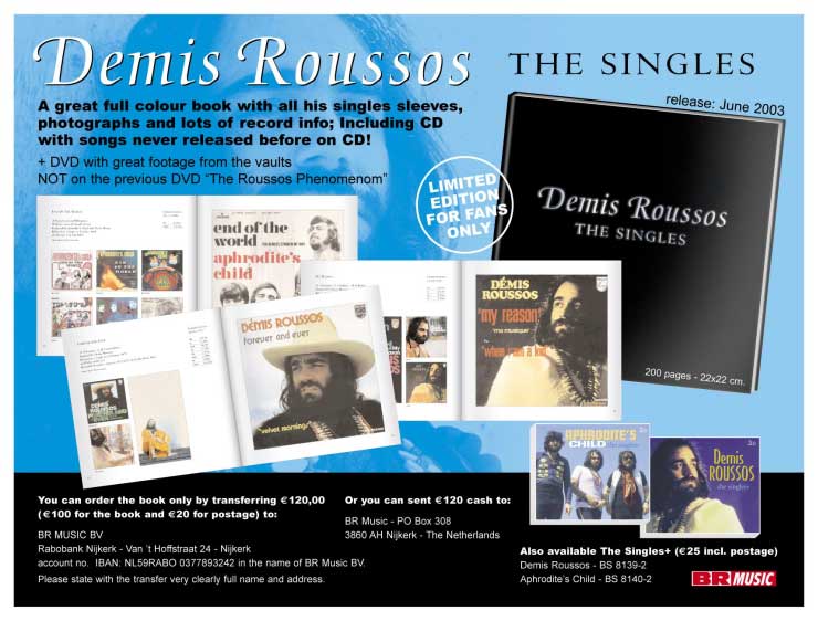 BR Music, well known from earlier Demis Roussos releases with interesting features for Vangelis enthusiasts (think of the Aphrodite's Child Complete Collection CD, the Phenomenon DVD with Aphrodite's Child clips, Remember the 60s DVDs, etc.), will soon produce yet another Roussos release that Vangelis collectors won't want to miss.