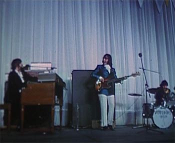 However, the real gems that make this DVD truly unmissable can be found among the extras, where no less than three live performances of "End of the World" can be found (2 genuinely live, another mimed to another recording of the song), as well as a live performance of Rain and Tears, with Vangelis playing solos. In between, the band improvises a little intermezzo. These kind of authentic on-stage images and shots of real audiences and the band actually performing are a whole new experience for Aphrodite's Child fans.
