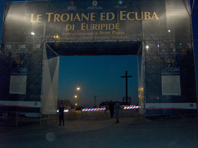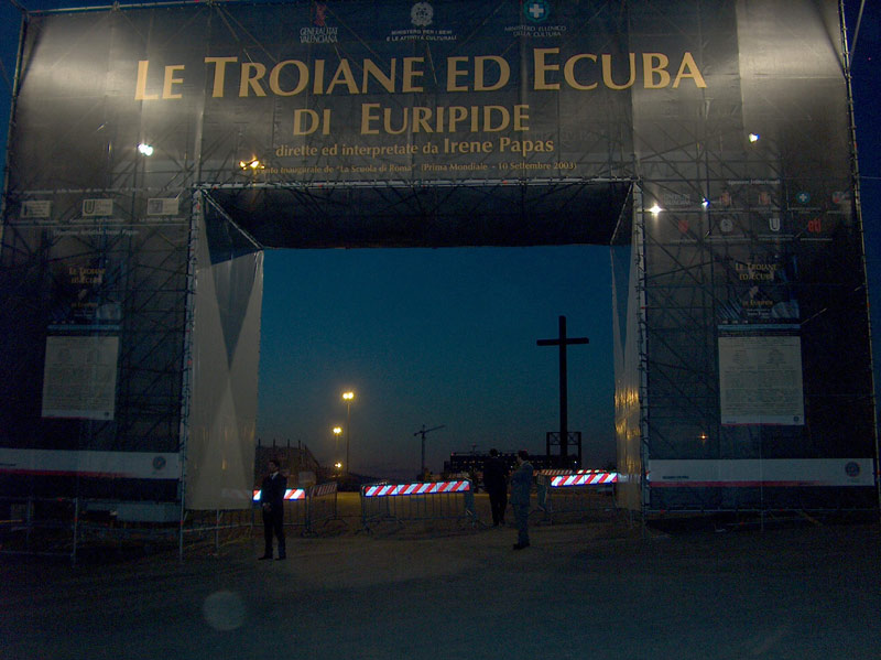 Irene Papas acts in and directs both plays. The stage design was conceived by Spanish architect Santiago Calatrava, who designed the dome currently being build over the main Athens 2004 olympic stadium. The costumes are being designed by Marina Karella (famous in Greece as sculptress and painter). Choreography by Aurelio Gatti. It seems that "Le Troiane" will premier in Rome on September 10, while the world premiere of "Ecuba" will happen on September 19. No more details are available at this point.