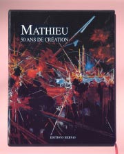 "Mathieu, 50 ans de création", the book described in the previous update news update (see below was released last week and is now available in French bookstores. The impressive work of over 800 A4 sized pages is housed in a hard cover box, and has been printed in excellent quality. There are 7 pages about the movie Frederic Rossif (Apocalypse des Animaux, Fete Sauvage, etc) made about the French expressionist painter Georges Mathieu. One picture of the artist with Vangelis on the set of the movie is included in the book. Thanks to Yves Rescalet. |