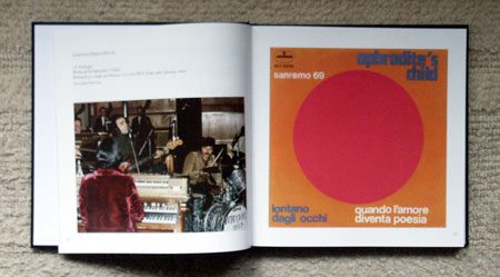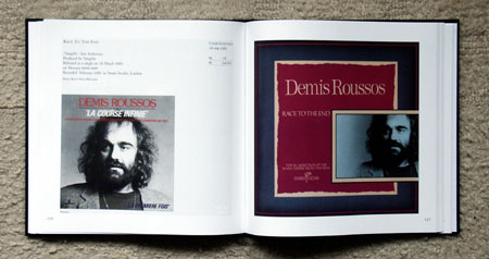 The main attraction is a book picturing (virtually?) all sleeve designs for Roussos' countless singles released throughout the world. This book however is accompanied by a CD as well as a DVD, both containing Vangelis related material that was not released earlier.