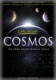 Fans of Carl Sagan's legendary "Cosmos" series may be interested to hear that it has now also been released on a DVD set in Holland. This version of the series should basically be the same as the famous American DVD box set, originally released near the end of the year 2000. This means that some (but not all) the music Vangelis wrote for the 1986 Halley's Comet edition of the series is included. This music cannot be heard anywhere else. Only one theme was released on CD, on the now rare Cosmos 2CD soundtrack, also from late 2000. This new Dutch DVD set comes with some additional "extra" features. Here's the producer's press release page: Thanks to Kees Wolvers for the tip. | ![]() |