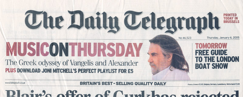 This Dutch version of the article can also be read online at Ode's web site (www.ode.nl), but this comes without the picture accompanying the printed version. "Ode", issue 65, April 2004 can currently be found in the Dutch shops. The Vangelis article is mentioned on the cover.