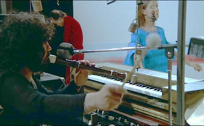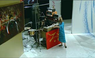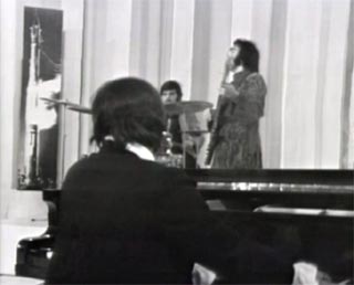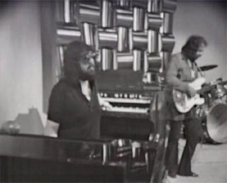 Vangelis' item lasts about 3 and a half minutes. He plays a very melodic tune on his keyboards (with some percussion too), for about a minute, followed by a short conversation where he demonstrates also some percussion. It was recorded with multiple cameras in black-and-white. The audio quality, especially at the beginning is very good for an item dating back to 1972.
