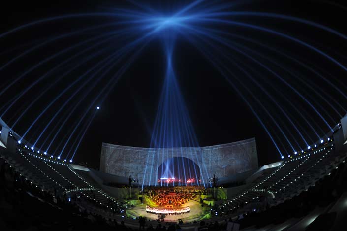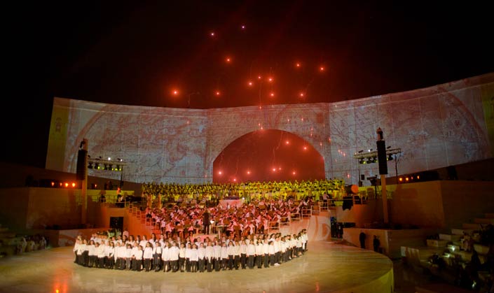 The performance will include new music, composed for the occasion. Vangelis, of course, will be personally performing, live at the event. He will be supported by the famous Romanian soprano Angela Gheorghiu and as a guest star the world renowned Italian / French tenor Roberto Alagna, Qatar's Philharmonic Orchestra, the Yurlov Russian State Academic Choir, the Qatar Philharmonic Orchestra's children choir, and a number of traditional musicians.
